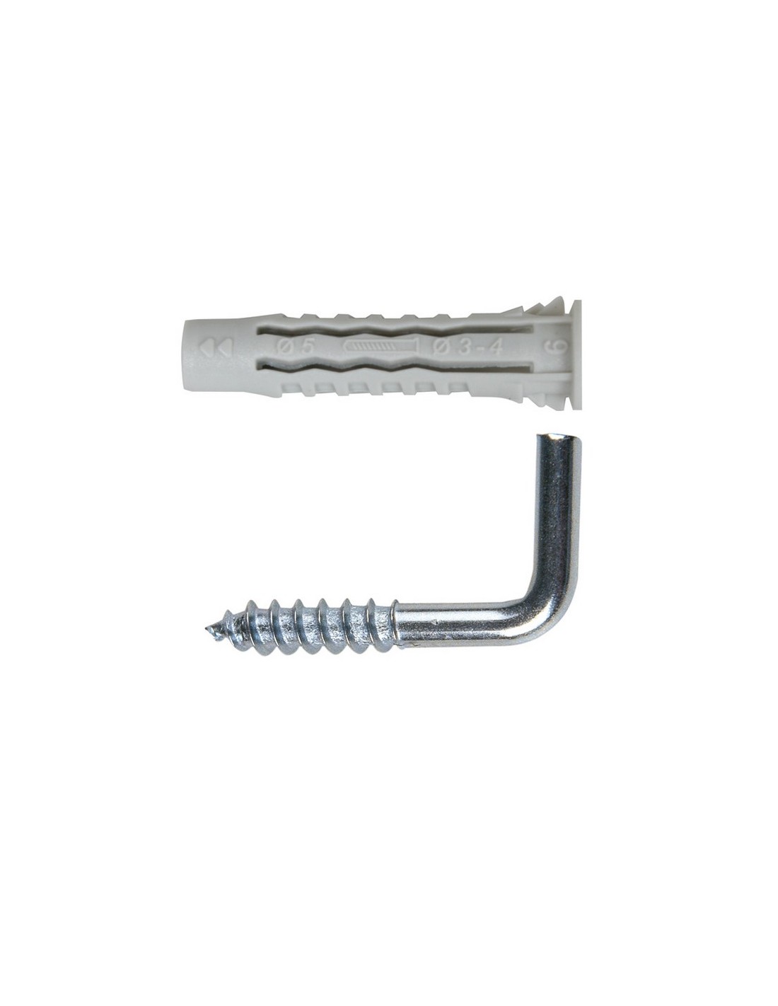 Taco nilón 4 caras + alcayata rosca EHS. Alcayata cincada. Presentados en blíster rígido. M5 + 17x50 mm. 4 unid.