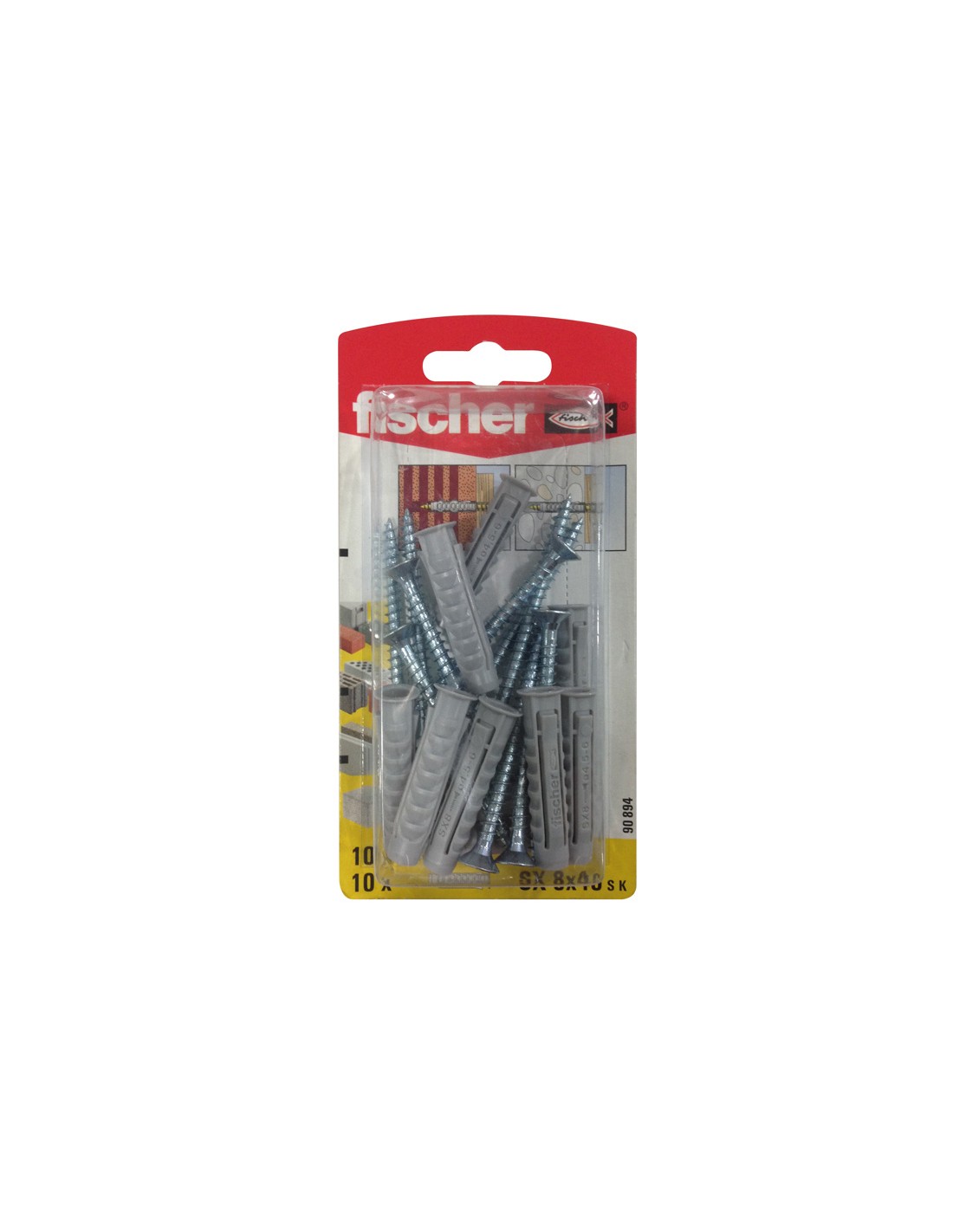 Taco plástico FISCHER-SX con tornillo. Tornillo rosca aglomerado. M8. 40 unid.