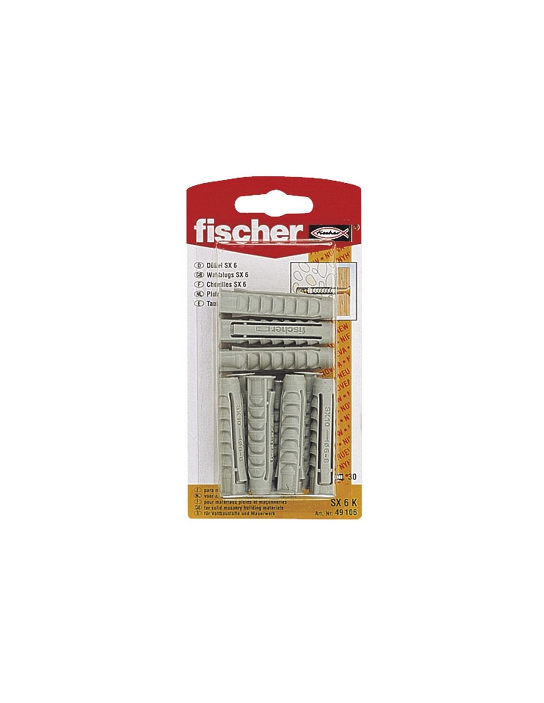 Taco plástico FISCHER-SX Máxima resistencia, gran comodidad de montaje. M8