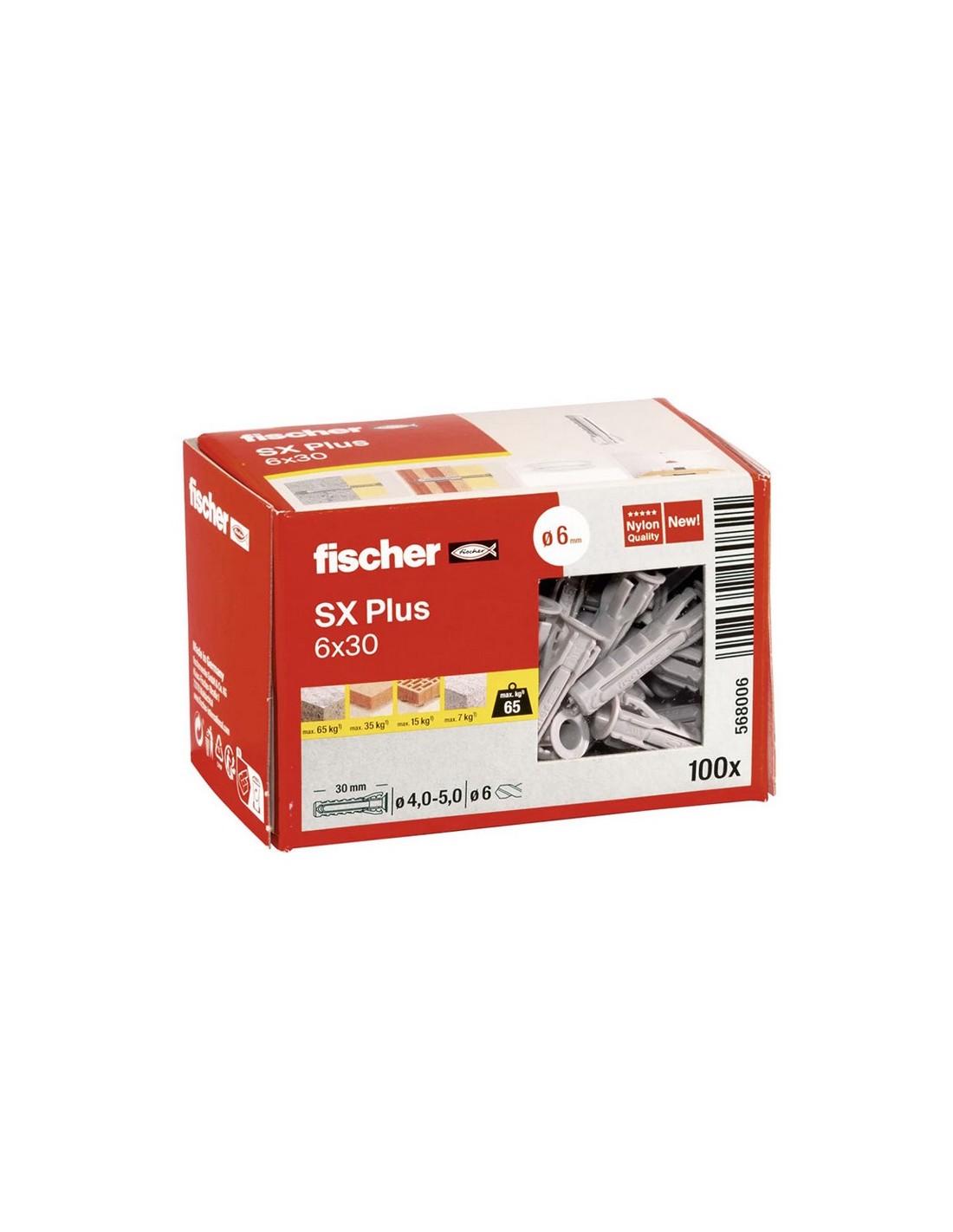 Taco plástico FISCHER-SX Plus Máxima resistencia, gran comodidad de montaje. Multimaterial. 4x20. 200u.