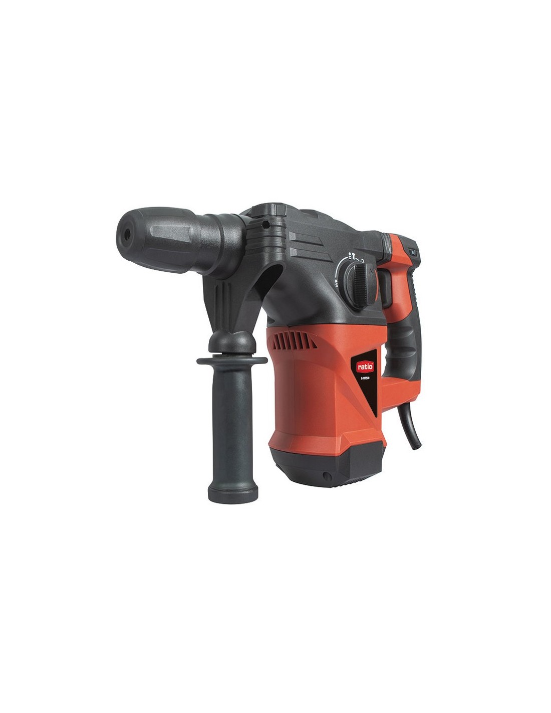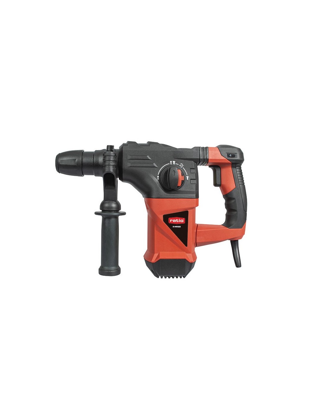 RATIOPROSERIESMartillo rotativo RATIO ProSeries R-MR1500 Anclaje SDS-Plus. 4 funciones: taladro, martillo, cincel y Vario-Lock. Empuñadura bimaterial. Maletín transporte con empuñadura auxiliar, tope profundidad. Potencia: 1.500 W. rpm:0-850. ipm: 0-4300. Impacto: 5 J. Taladro máx. acero: 13 mm. Taladro máx. madera: 40 mm. Taladro máx. hormigón: 30 mm. Peso: 5 kg.