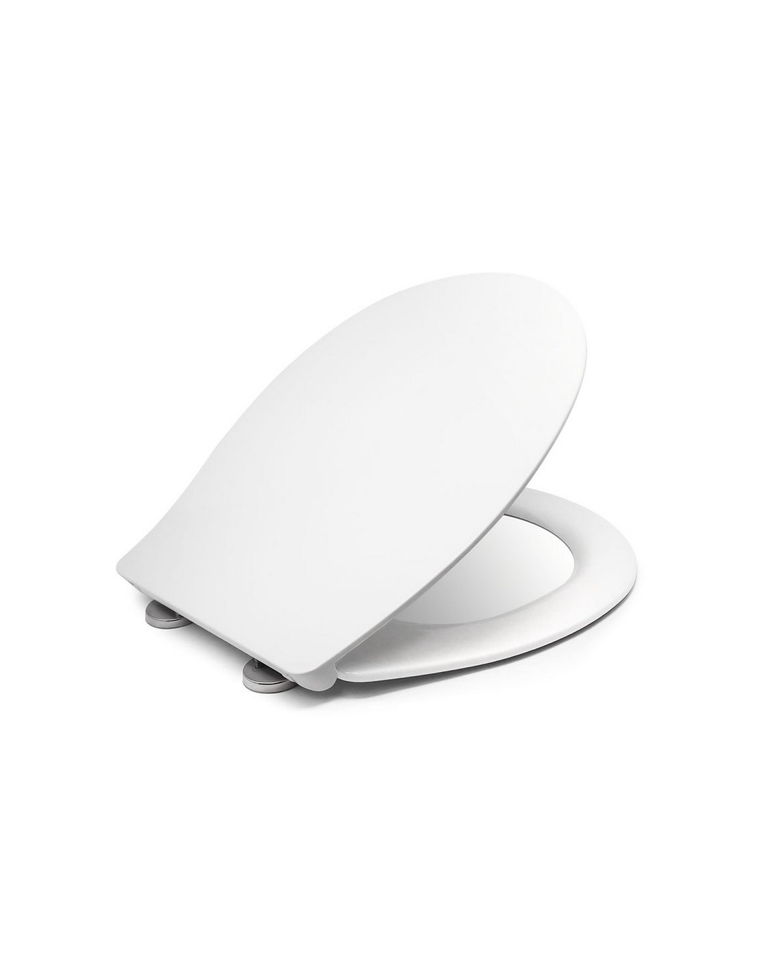 Tapa WC ESTOLI Kidur 2 blanca Caída amortiguada. Bisagra metálica. Montaje superior. Ajustable y extraíble. Medidas: 46,3x19,0 cm.