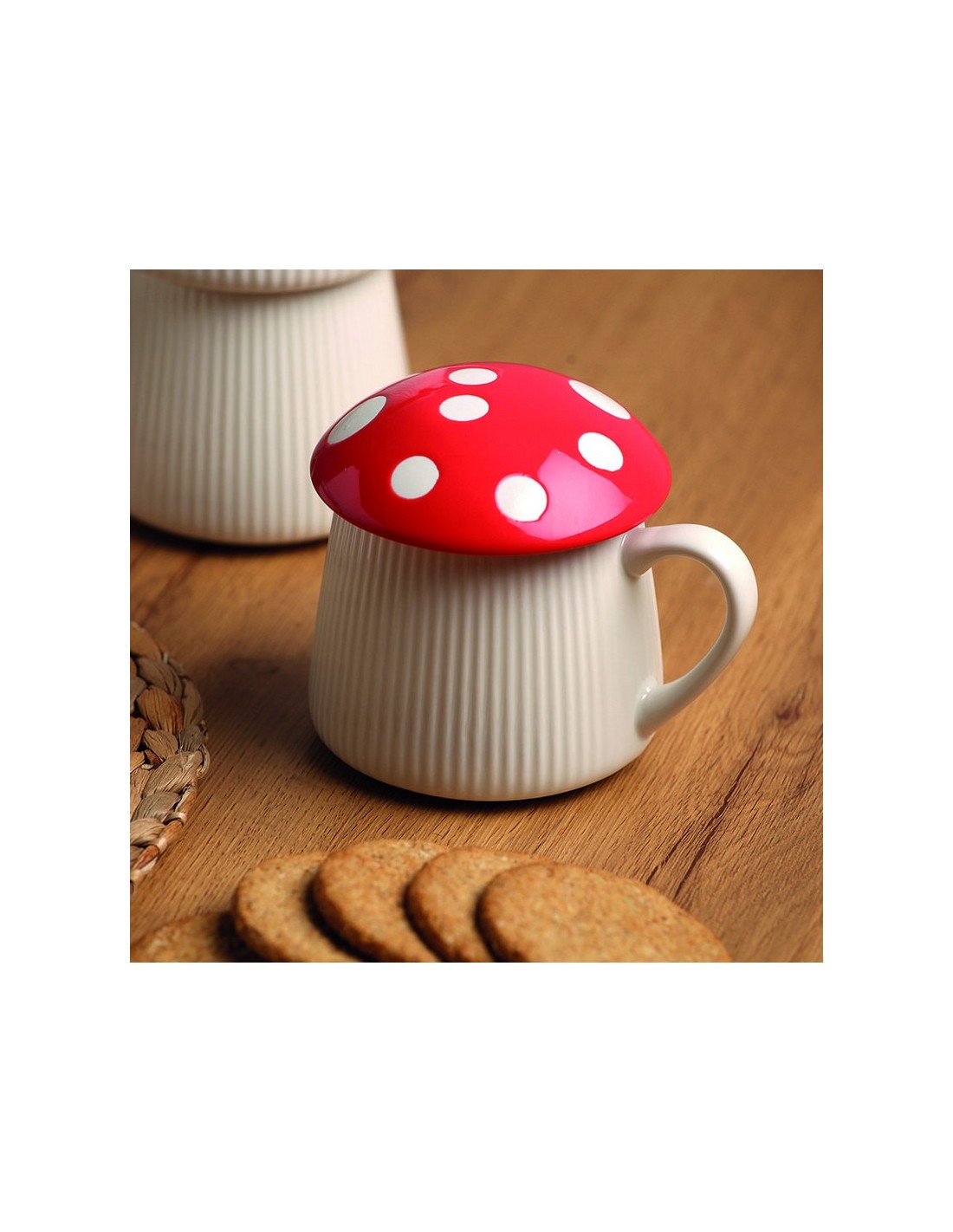 Mug con tapa Seta Color rojo. Material porcelana. 8x8x8,5 cm.