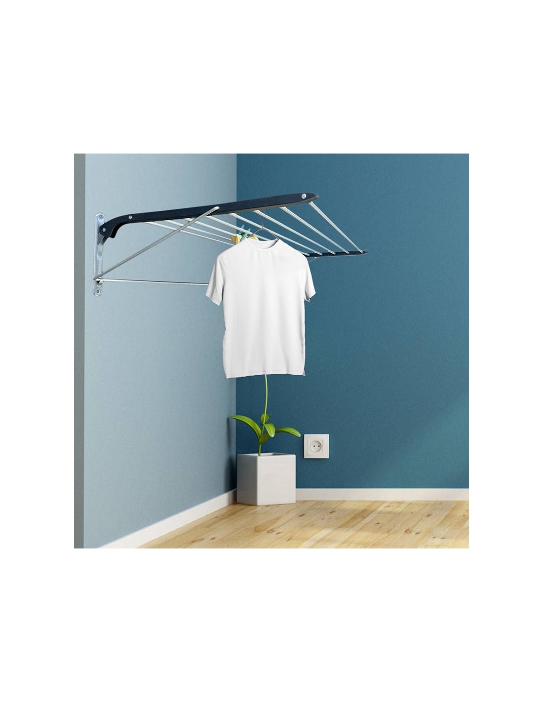 Tendedero pared Practik Plegable. Aluminio/resina. 100% inoxidable. Interior/exterior. Tendido 6,4 m. 80x50x26 cm.