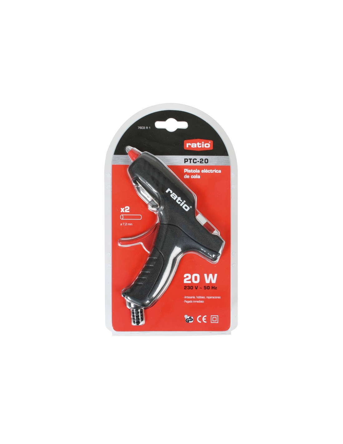 Termoencoladora RATIO PTC-20/40/80 Ideal para trabajos de decoración, artesanía, bricolaje y pequeñas reparaciones. Incluye 2 barras de. cola. Normativa CE y GS. 20 W. Barras ø 7,2 mm.