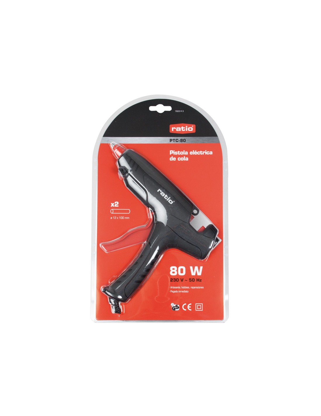 Termoencoladora RATIO PTC-20/40/80 Ideal para trabajos de decoración, artesanía, bricolaje y pequeñas reparaciones. Incluye 2 barras de. cola. Normativa CE y GS. 80 W. Barras ø 11 mm.