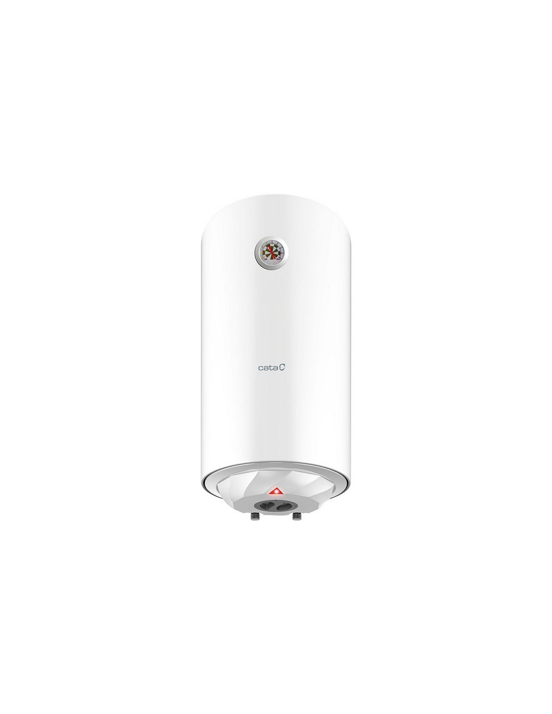 Termo eléctrico redondo CATA serie CTR Instalación vertical. Cuba de acero con esmalte al titanio vitrificado a 850º C. Display mecánico. Modo ECO inteligente. Manguitos aislantes. Válvula de seguridad con dispositivo de vaciado. Exterior con descubrimiento de pintura poliéster. 220/240 V - 50/60Hz. Potencia total: 1.500 W. 50 litros. 385x385xh.770 mm.