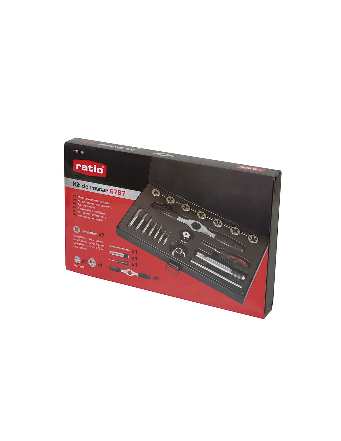 Terrajas y machos roscar RATIO 6787 20 accesorios. Estuche metálico. Composición: