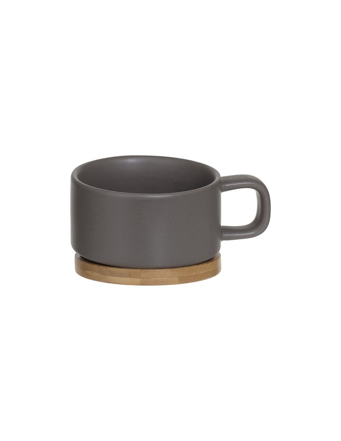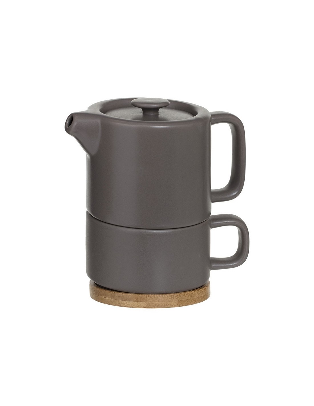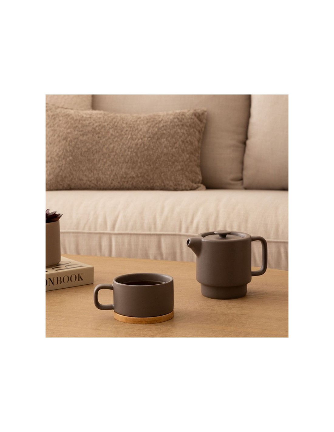 Tetera cerámica Nature Cerámica con base en madera. Cuatro piezas. 9,7xh.15 cm. Gris topo. Cerámica. 40 cl.