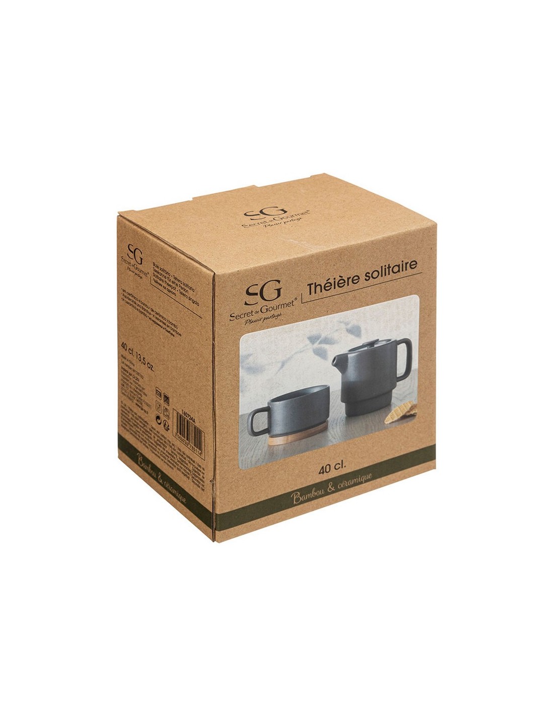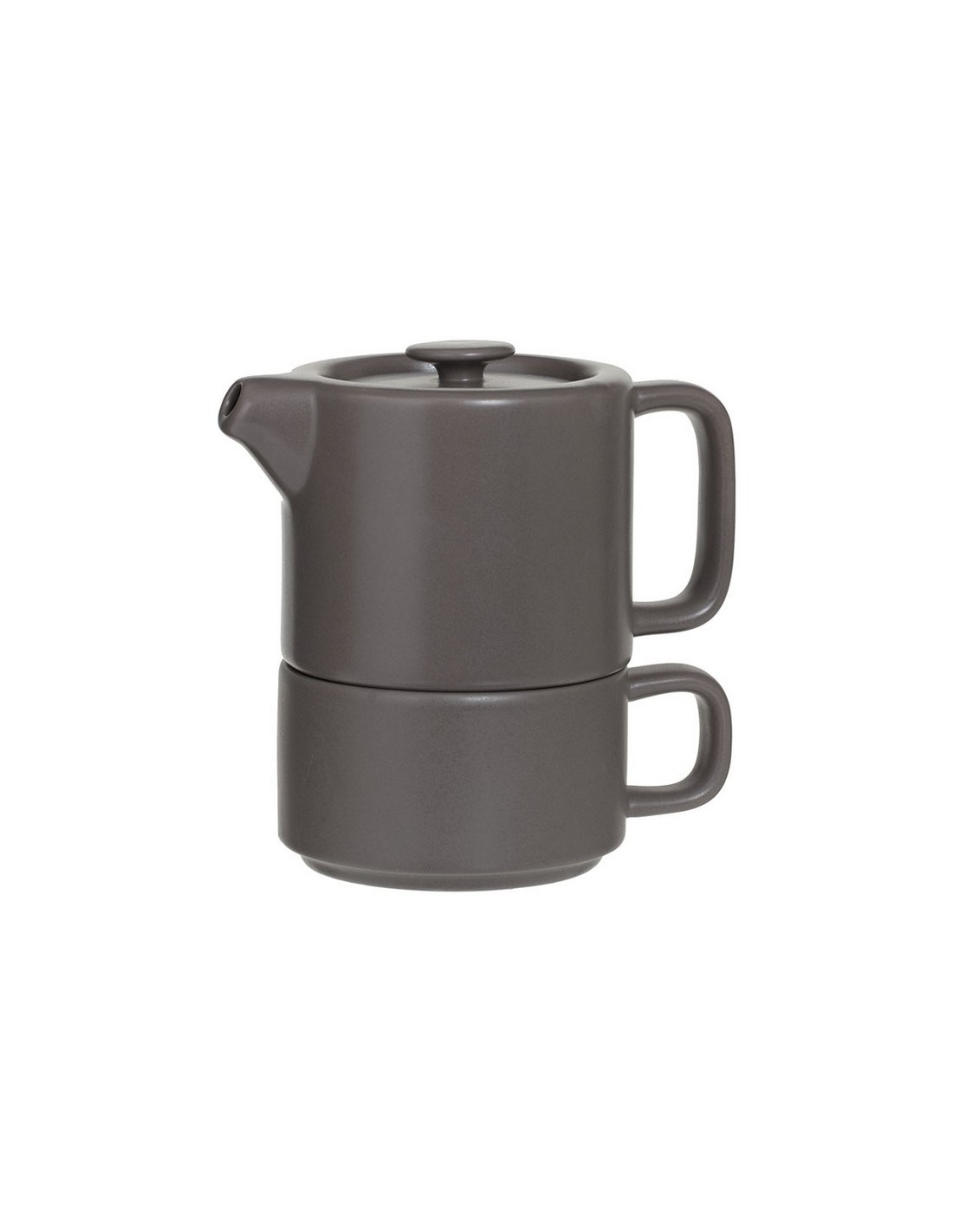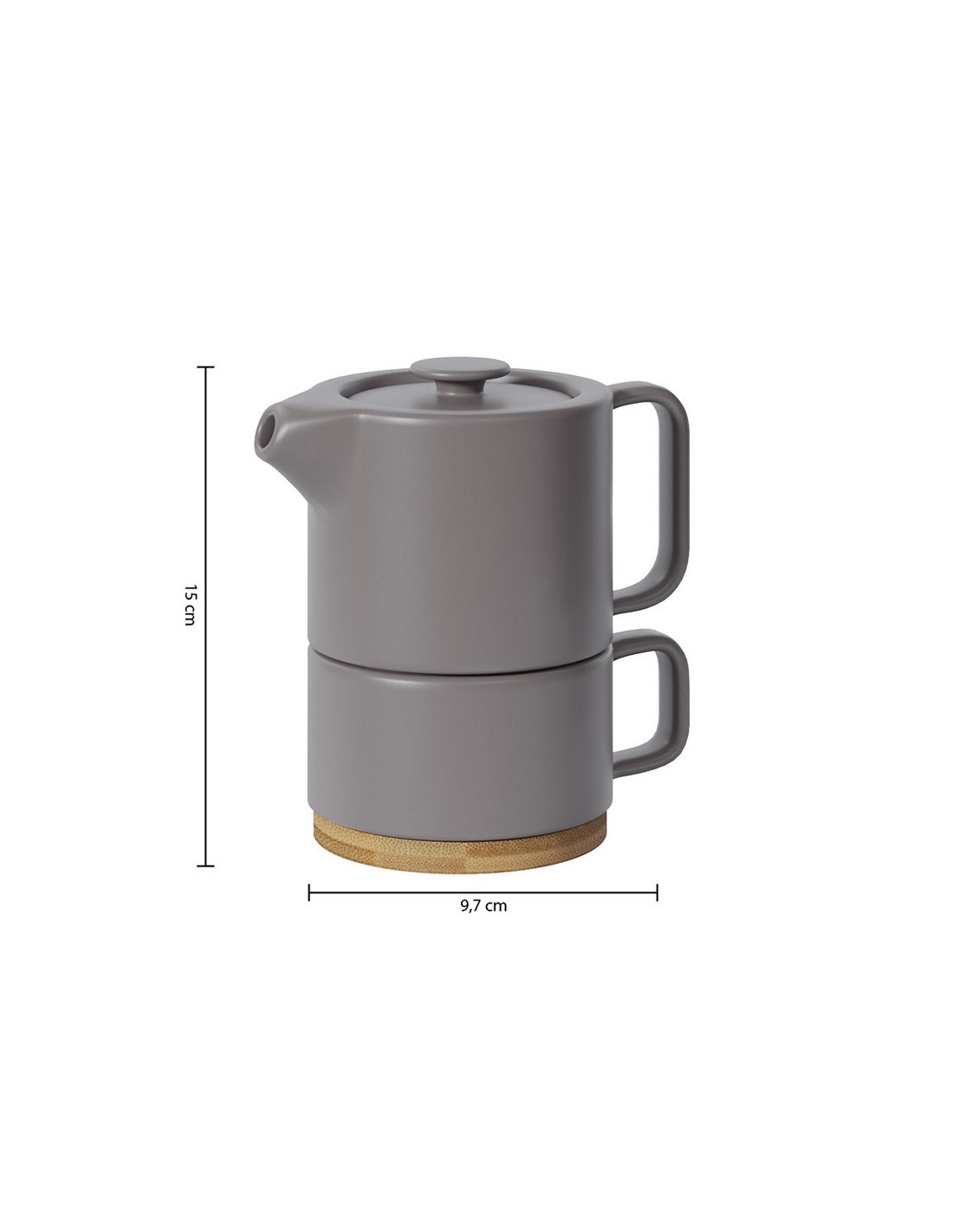 Tetera cerámica Nature Cerámica con base en madera. Cuatro piezas. 9,7xh.15 cm. Gris topo. Cerámica. 40 cl.