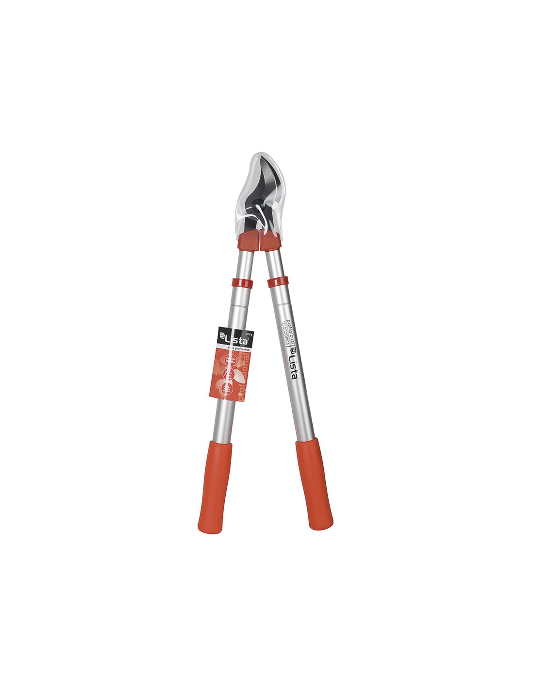 Tijera podadora LISTA serie Profesional. Corte deslizante (Bypass). Acero cromo-vanadio. Cuchilla rectificada. Hoja cambiable. Ajuste con rosca fina y lengüeta de sujeción. Mangos de aluminio. Ajustada a mano. Puños redondos para un mejor agarre. Topes de elastollan. ø corte máx. 35 mm.