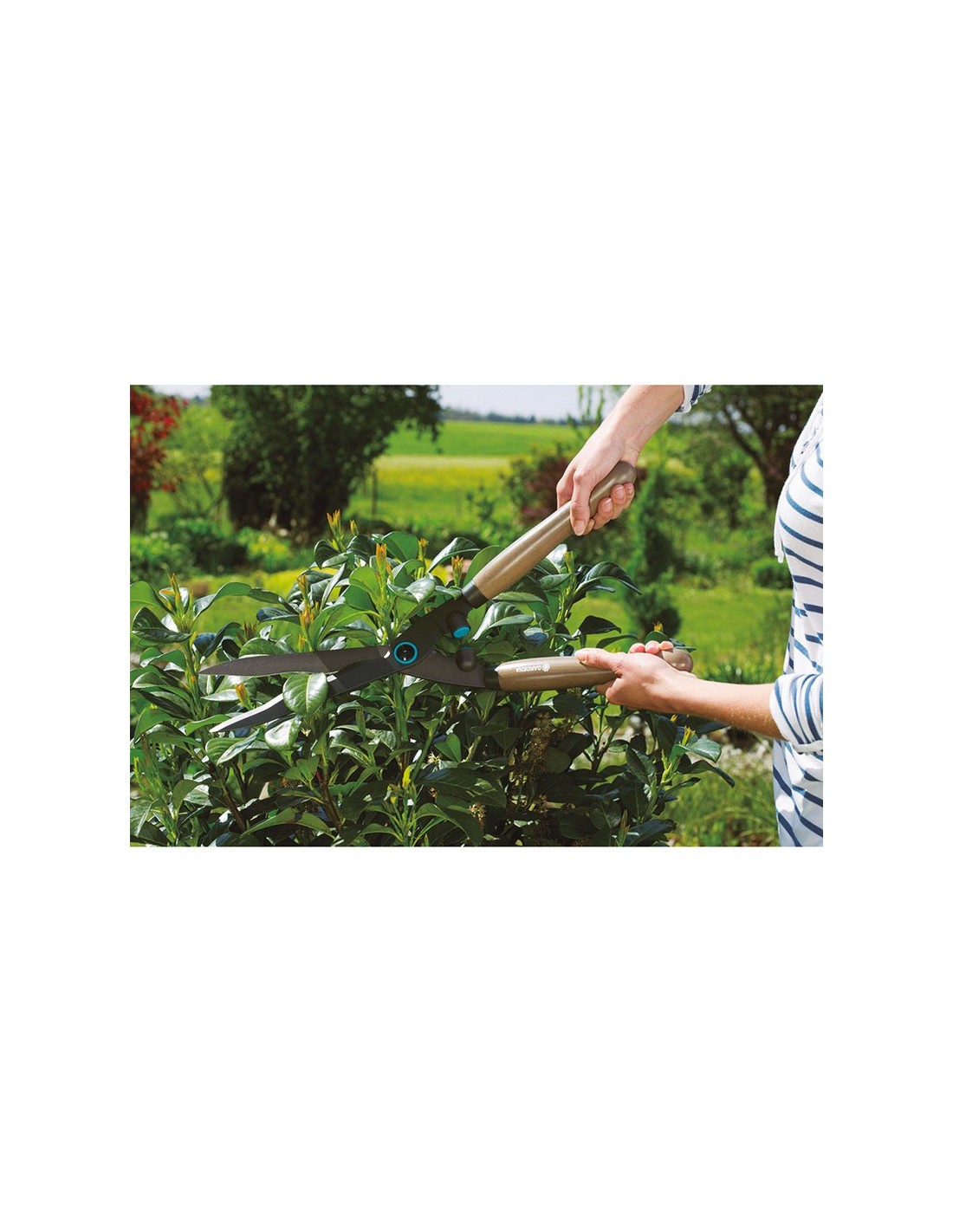 Tijera cortsetos nature CUT Cuchillas onduladas con revesitimiento antiaherente. Mangos de madera. Longitud total: 54 cm.