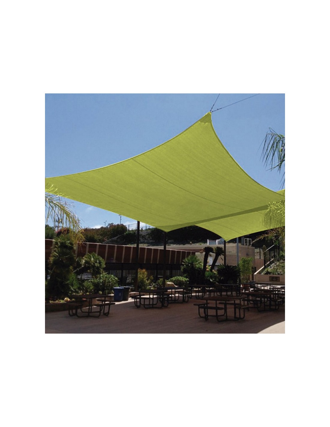 Toldo vela impermeable LISTA 100% poliéster. Doble película de protección PU y antimoho. Anillas de acero inox y cuerdas incluidas. Color verde pistacho. Cuadrado. 3,6x3,6 m. Verde.