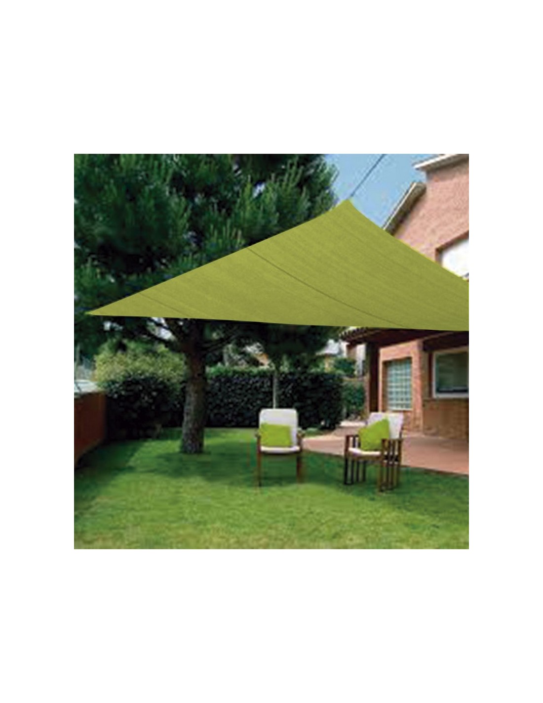 Toldo vela impermeable LISTA 100% poliéster. Doble película de protección PU y antimoho. Anillas de acero inox y cuerdas incluidas. Color verde pistacho. Triangular. 3,6x3,6x3,6 m. Verde.