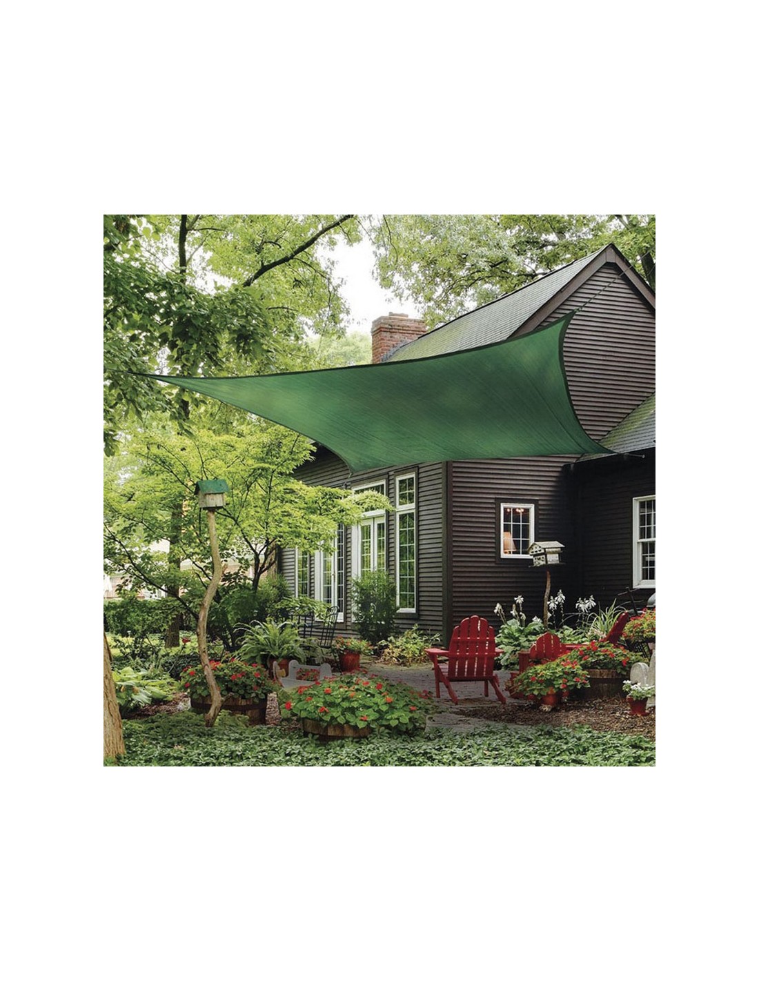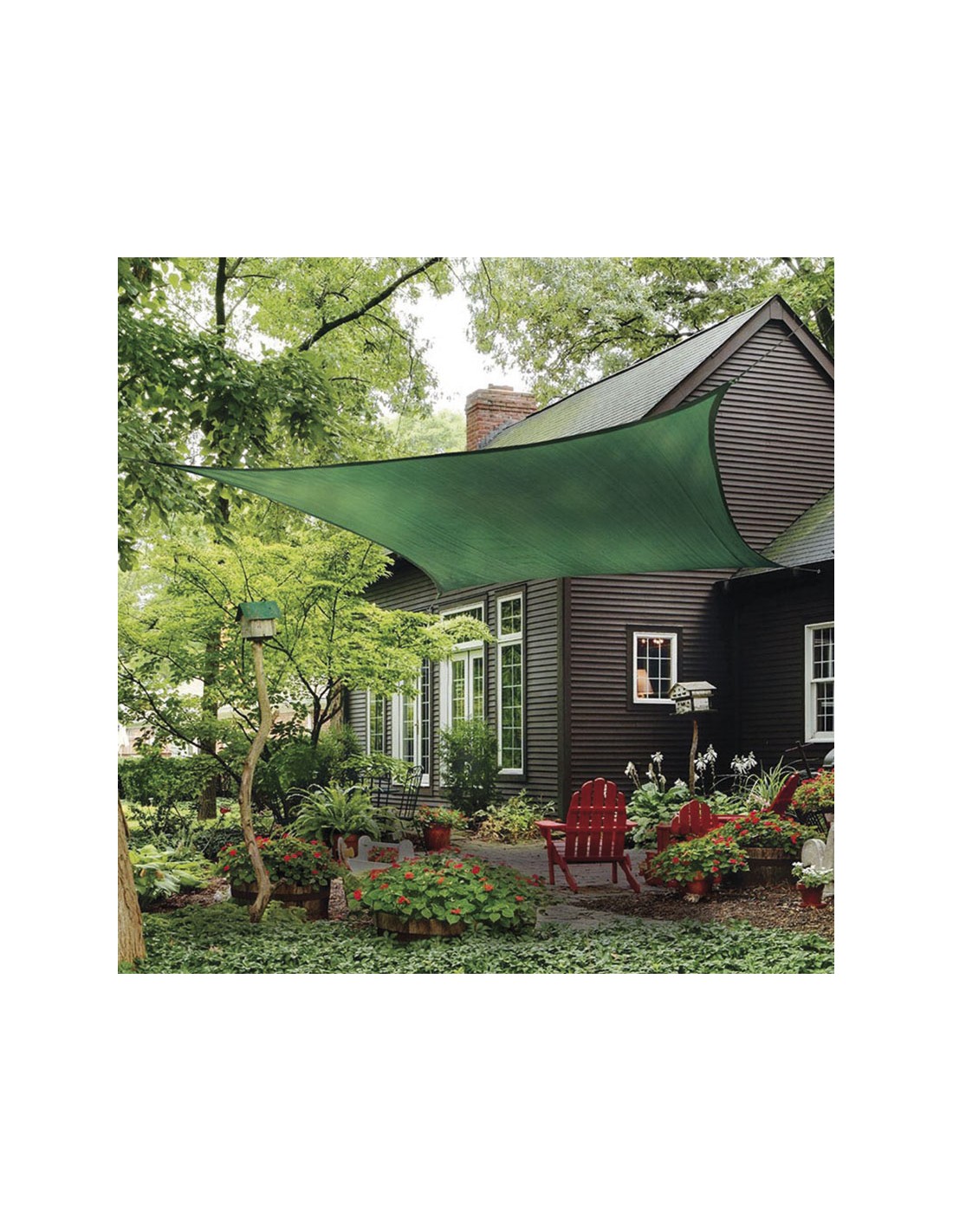 Toldo vela sombreador LISTA. HDPE 100% virgen (no reciclado) tejido. Resistente al moho y las manchas. El polietileno a diferencia de la tela o la lona no absorbe ni el agua ni la humedad. Diseño de alta resistencia con protección UV para evitar la decoloración y el deterioro. Densidad de 185 gr/m². Anillas de acero inox en las esquinas para su perfecta sujeción. Cuadrado. 5,5x5,5 m. Verde.