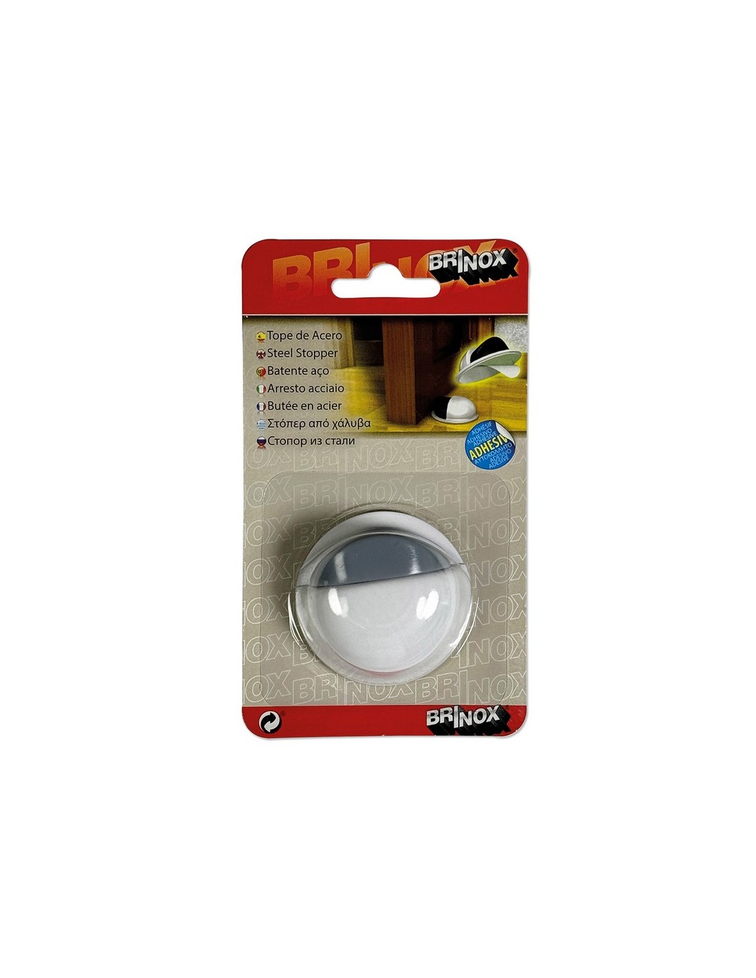 Tope puerta acero BRINOX Autoadhesivo. Acero/goma amortiguadora. ø 49xh.22 mm. Blanco.