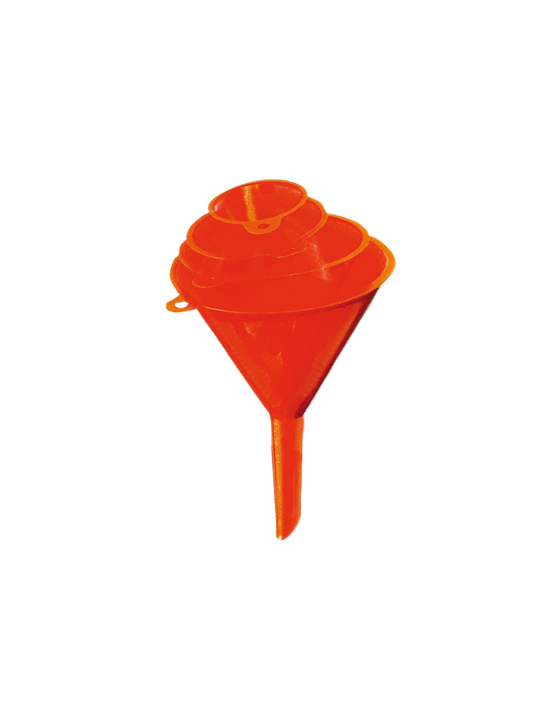 Embudo PRESSOL. Juego 4 medidas. Polietileno baja presión. Uso industrial: aceite, gasolina y ácidos. ø 5-7,5-10-12 cm.
