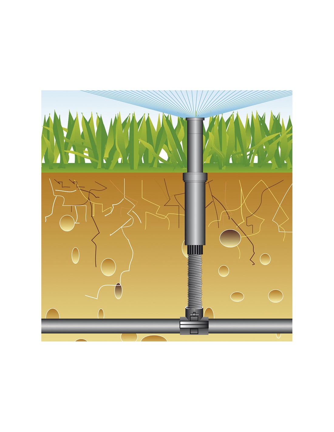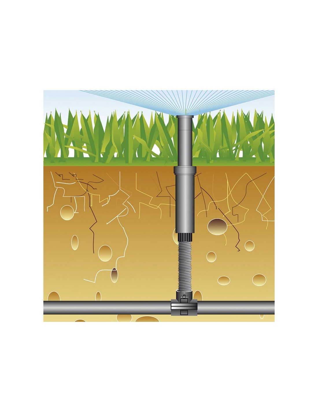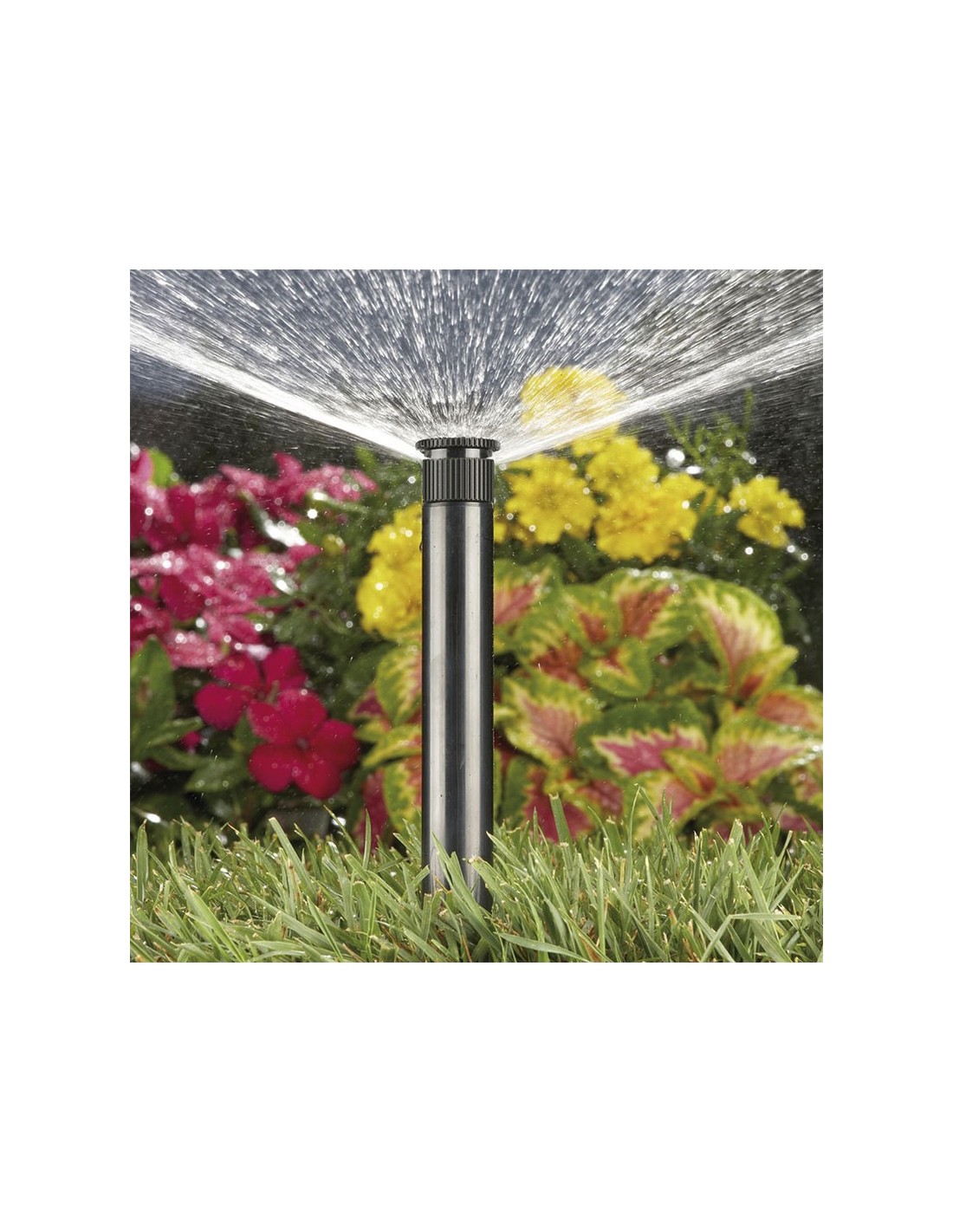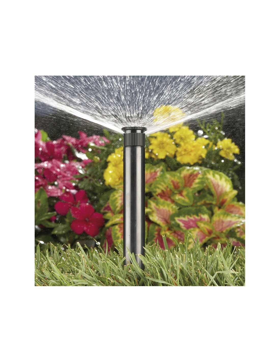 Difusor con tobera reguable AQUACONTROL Rosca H 1/2". Ángulo regulable 25º-360º. Presión recomendable de trabajo 2,5 Bar. Alcance de 4-4,5 m. Emerge 11 cm. Cerrado 16 cm.