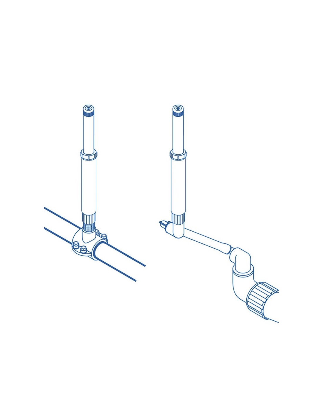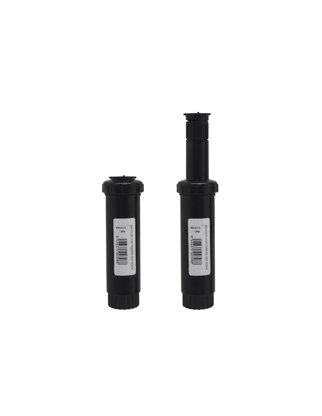 Difusor con tobera reguable AQUACONTROL Rosca H 1/2". Ángulo regulable 25º-360º. Presión recomendable de trabajo 2,5 Bar. Alcance de 4-4,5 m. Emerge 6 cm. Cerrado 11,5 cm.