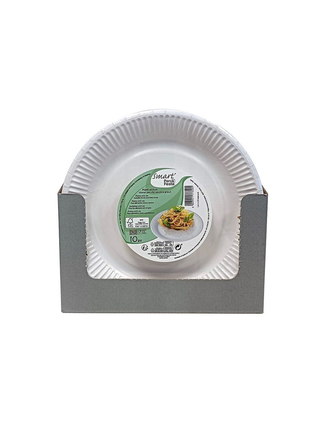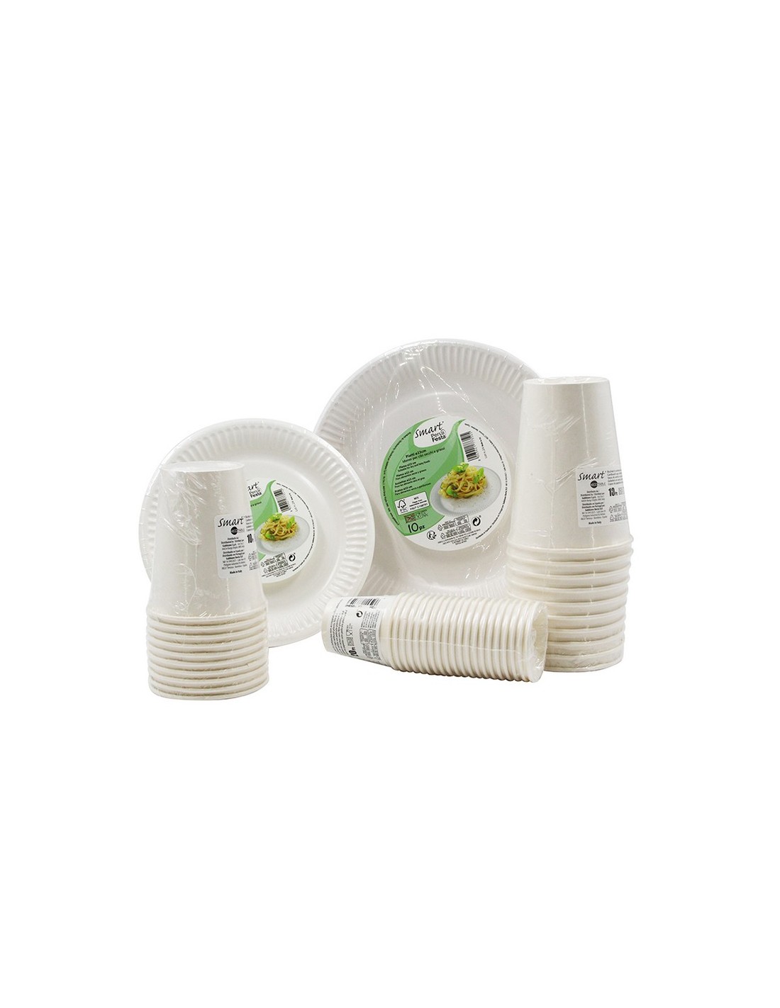 Menaje desechable Plastic Free Cartón FSC eco blanco. Presentación en caja expositor display. 12 packs 10 vasos. 36 cl.