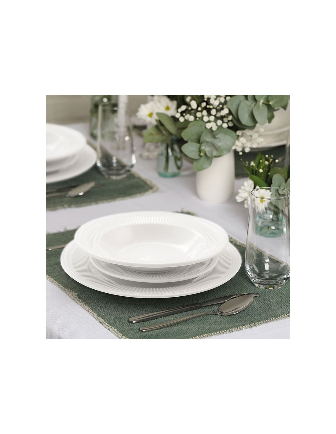 Platos vajilla porcelana Ala Dorique Porcelana blanca. Juego 6 unidades. 6 platos llanos. ø 27 cm.