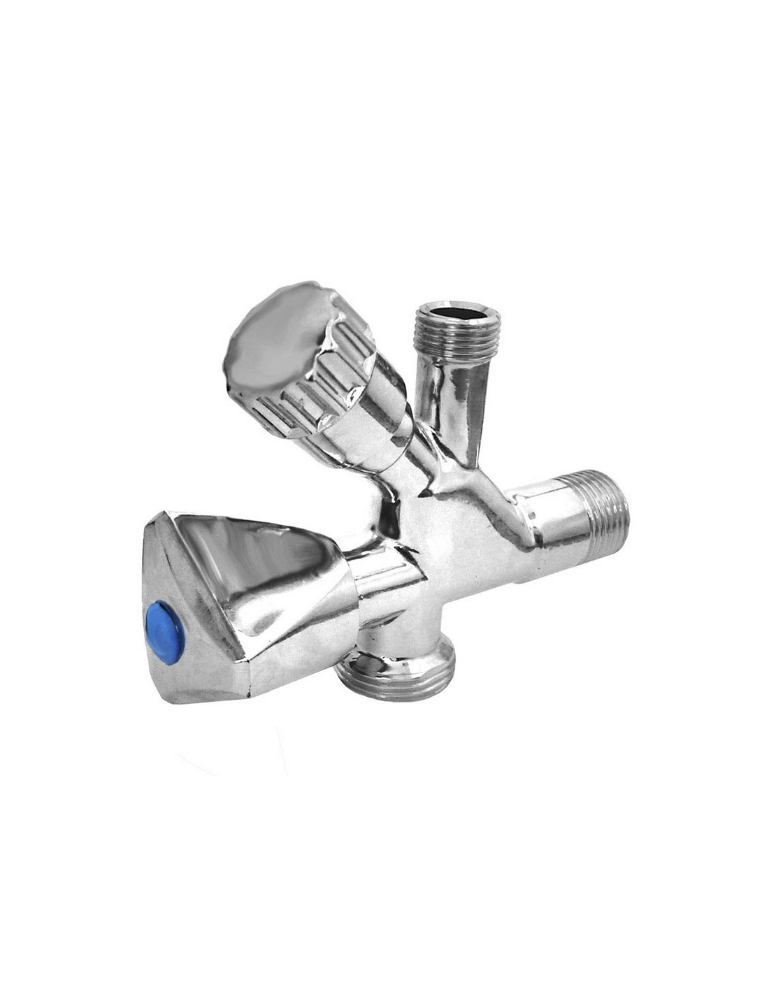 Válvula mixta lavadora/lavabo MT 3 vías. Latón CW617N niquelado. 1/2\"x3/4\"x3/8\".