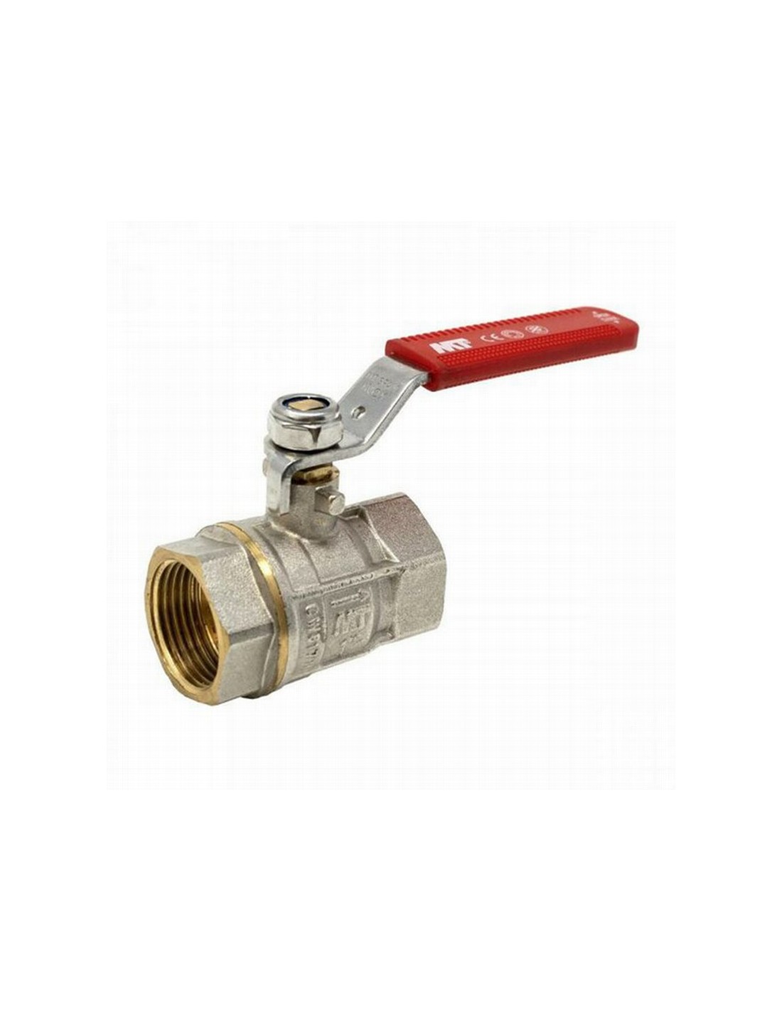 Válvula esfera MT PN-30 H-H Paso total. Sistema antihielo. Certificado ACS. Cuerpo reforzado. Latón CW617N. Palanca ergonómica en acero inoxidable roja con tuerca autoblocante. -20° / 120°. PN-30. H-H. Palanca inox roja. 3/4\".