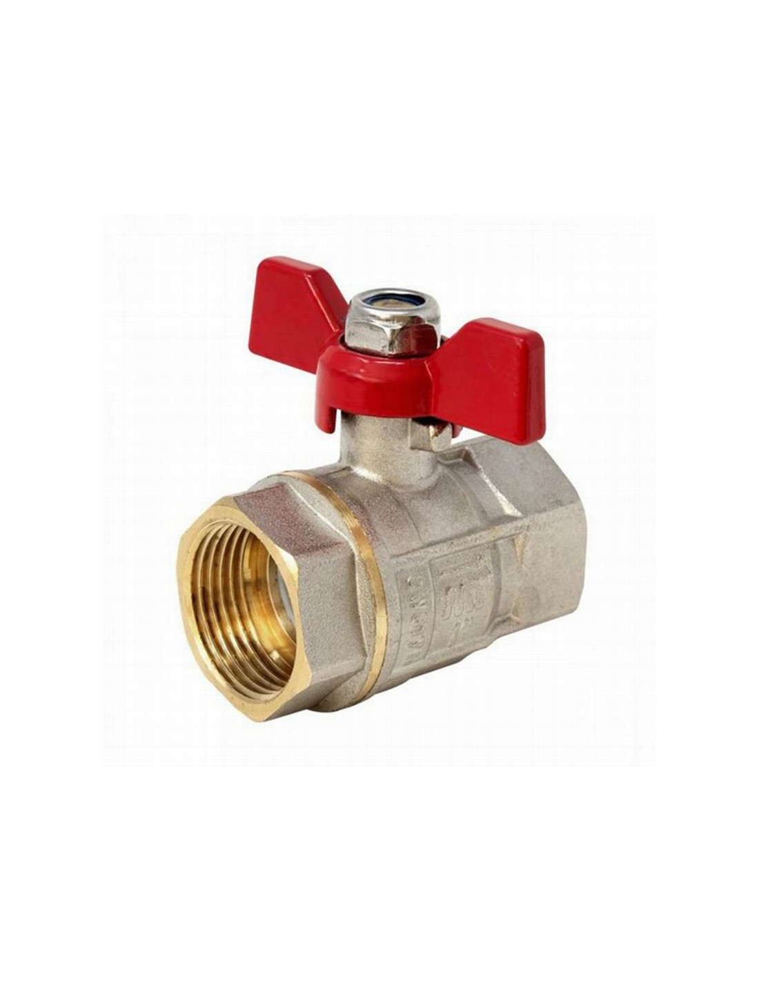 Válvula esfera mando mariposa MT PN-30 Paso total. Sistema antihielo. Certificado ACS. Cuerpo reforzado. Latón CW617N. Mariposa aluminio roja con tuerca autoblocante. -20° / 120°. PN-30. H-H. Mariposa aluminio roja. 3/4\".