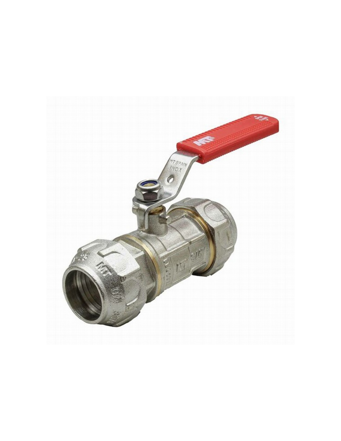 Accesorios compresión tubería PE MT serie ligera Latón a compresión para tuberías de polietileno de baja y alta densidad. Cuerpo y tuerca fabricados en latón en acabado arenoso. Soportan una presión de 16 bar y temperatura máxima de trabajo de 90ºC. Codificación unitaria con EAN13. Válvula esfera PN-30. PE/PE. ø 32. Palanca inox roja.
