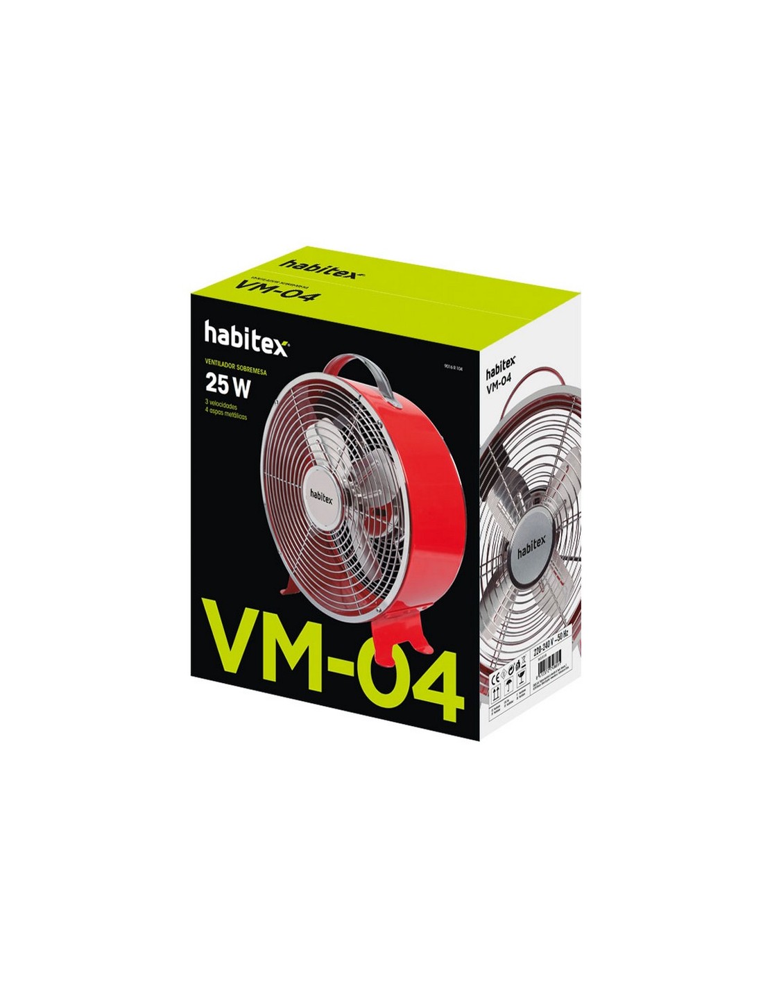 Ventilador sobremesa HABITEX VM-04 2 velocidades. Tipo reloj. Hélice metálica de 4 aspas. 20 W.