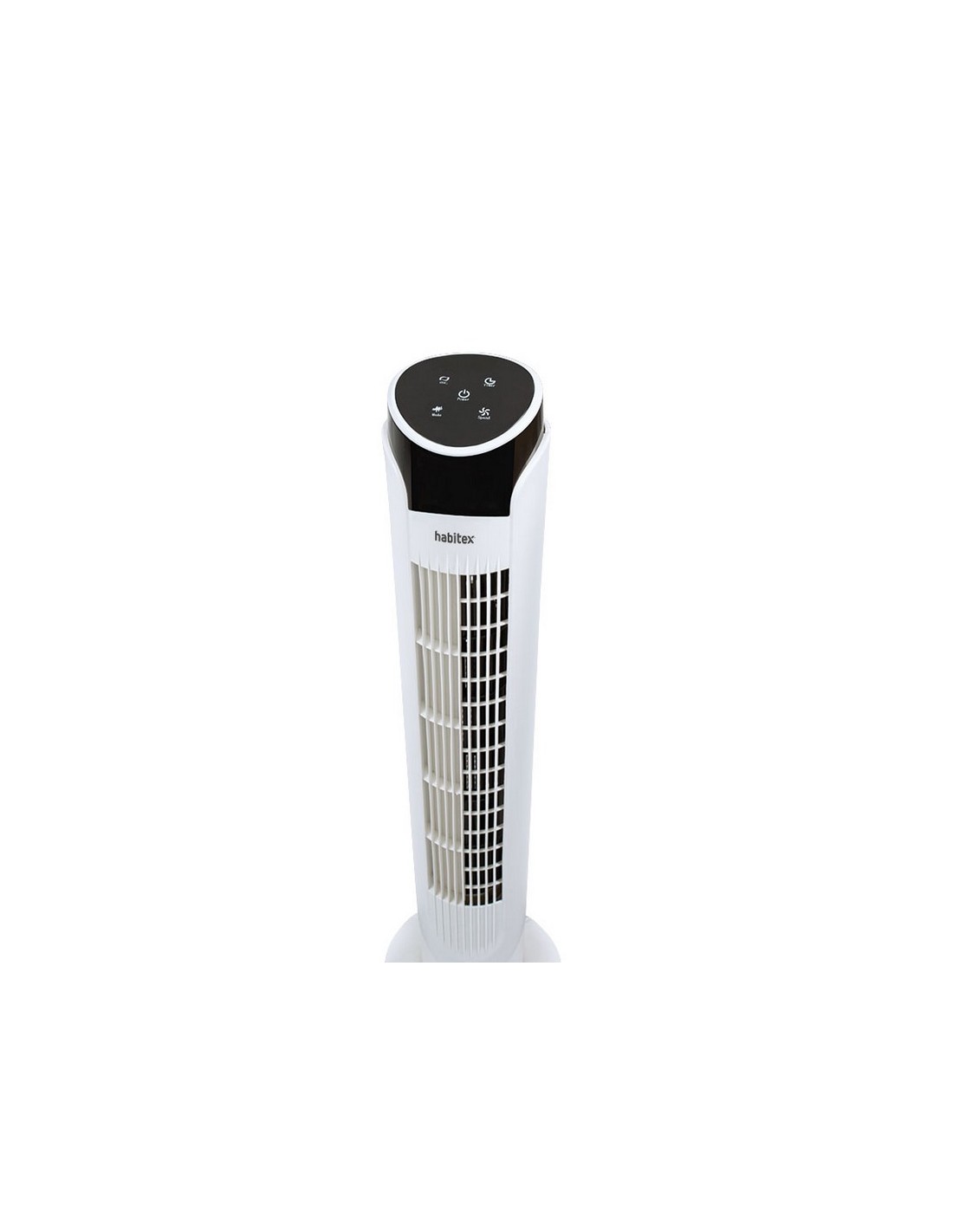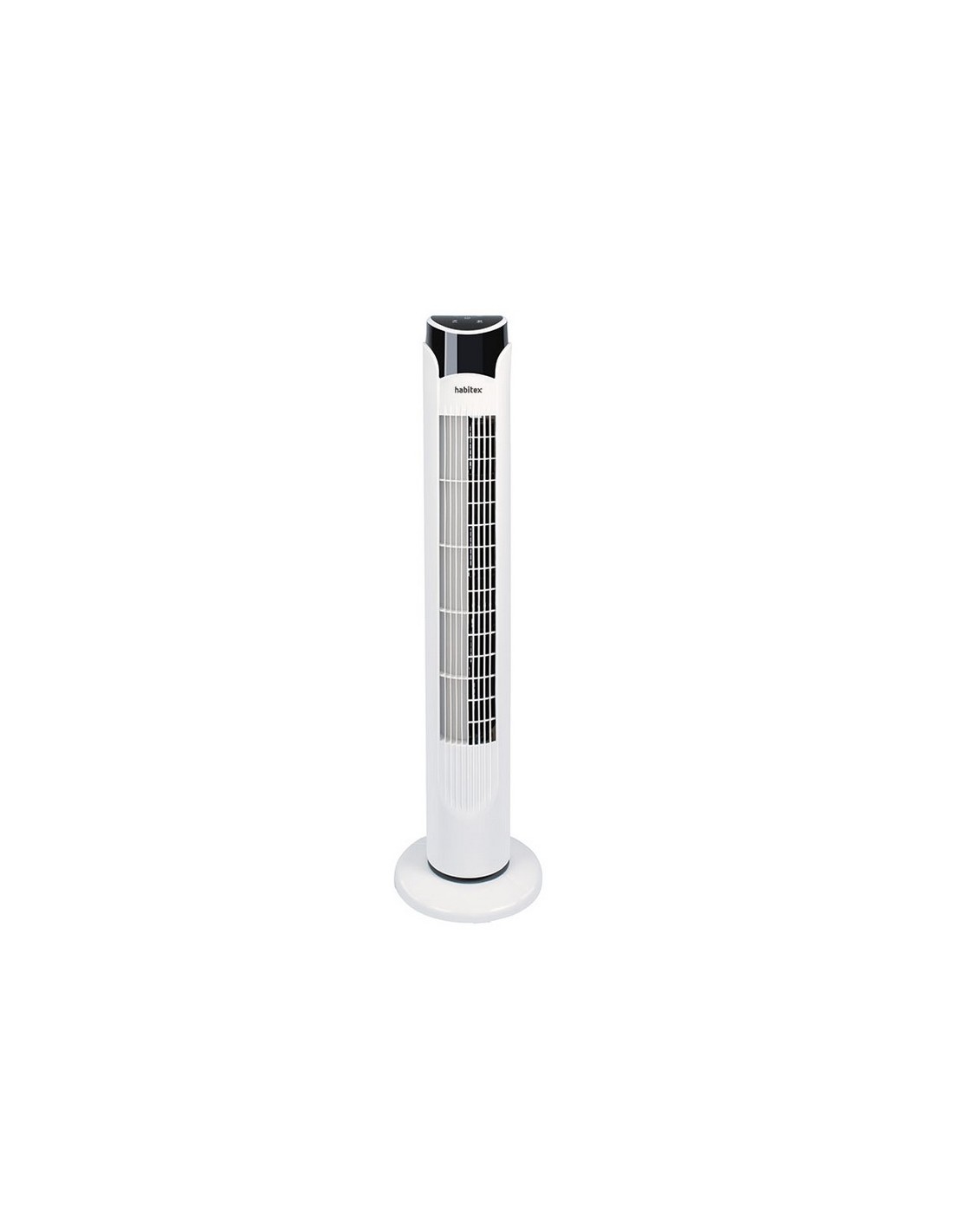 Ventilador torre HABITEX VT60 3 velocidades. 3 modos: normal, natural y noche. Función oscilación. Mando a distancia. Temporizador 12 horas. Display Led que muestra la temperatura en ºC, el modo y la velocidad seleccionados. 45 W.
