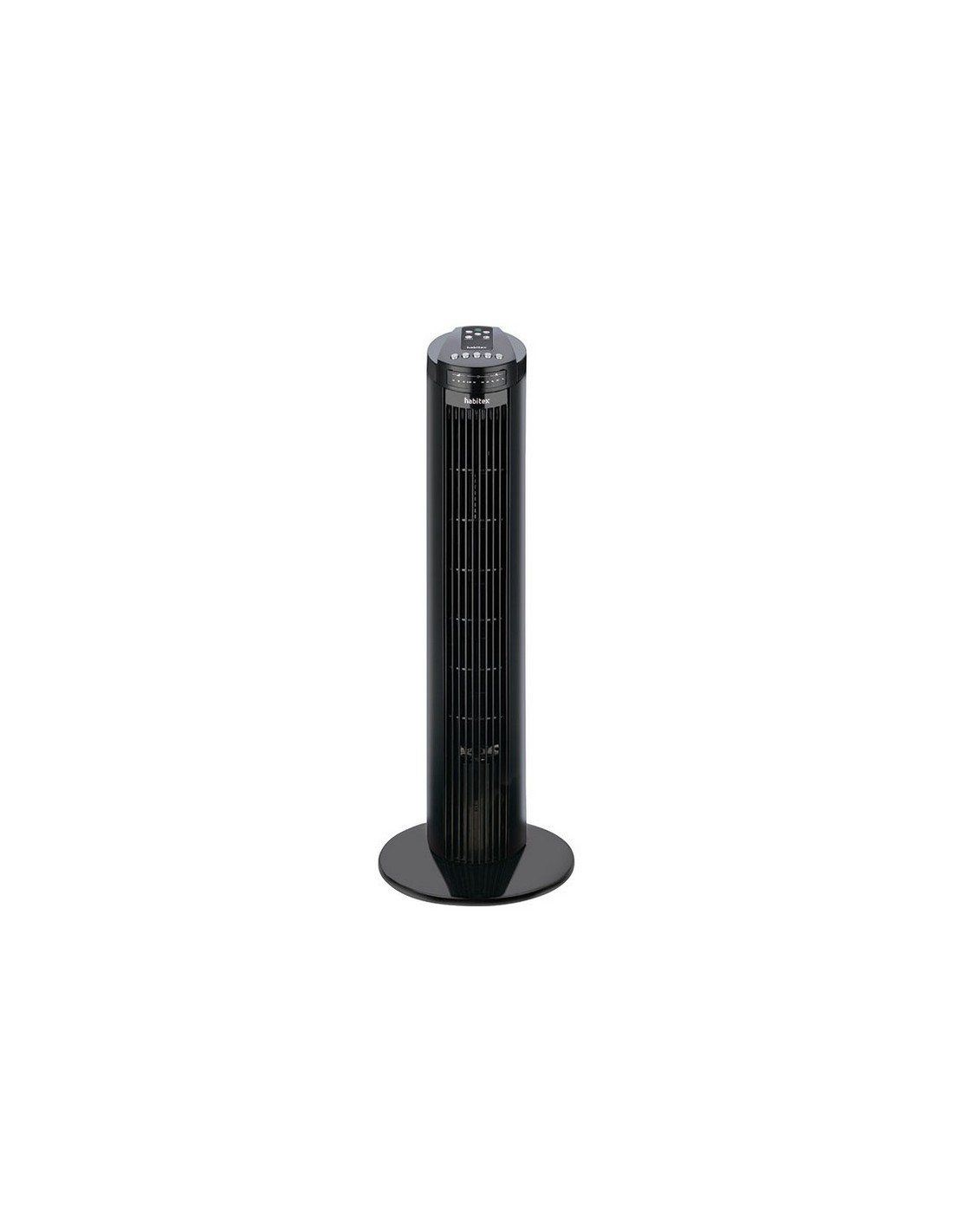 Ventilador torre HABITEX VT093 50 W. 3 Velocidades. Voltaje 220V - 240V. Temporizador 7,5 horas. Mando a distancia. Oscilante. base ø 27xh.75 cm. Caudal aire: 4,0 m³/min. Negro.
