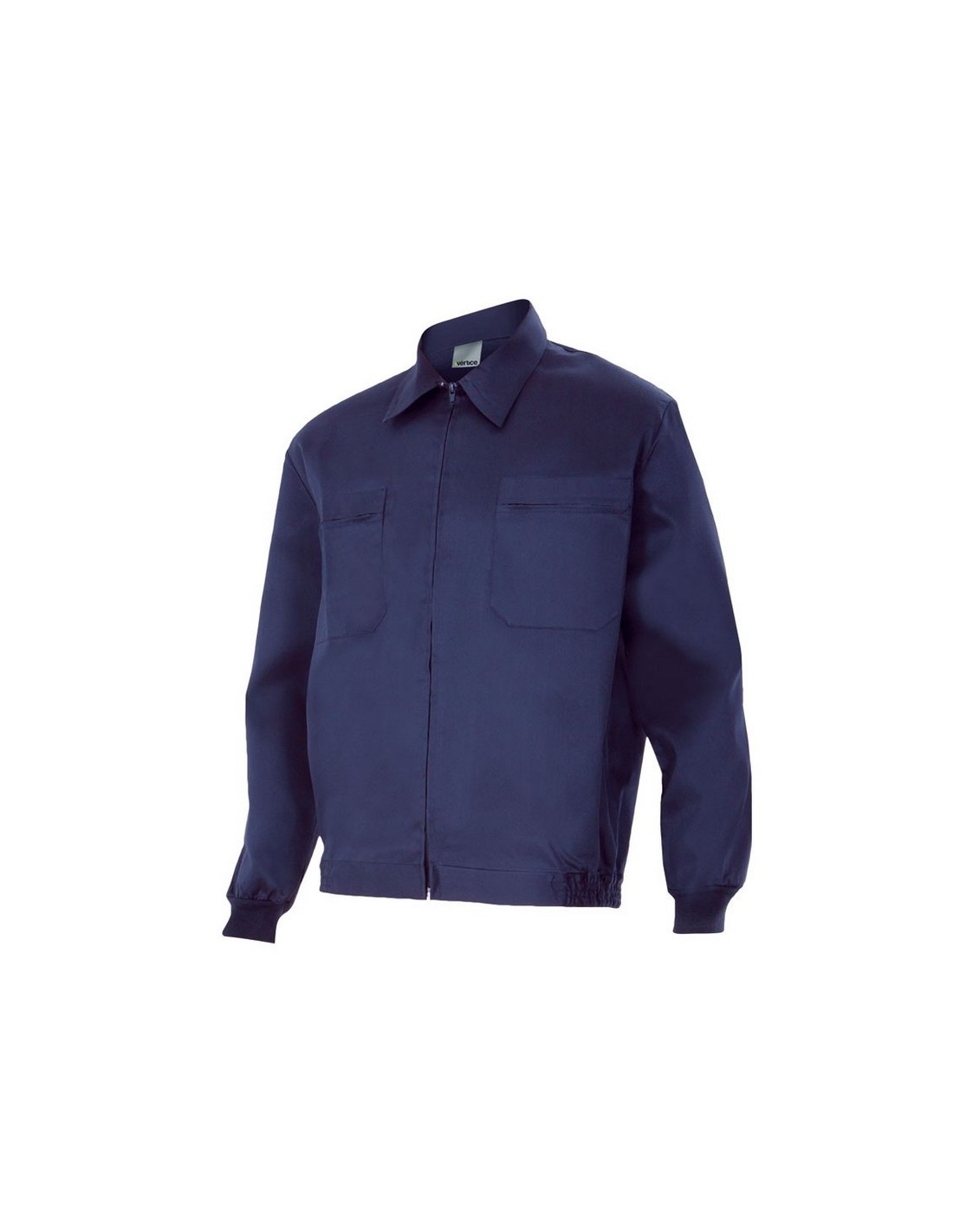 Cazadora VELILLA Vértice. Cremallera central. Puños canalé. 2 bolsillos con cremallera en el pecho. Cintura con laterales elásticos. Composición: 20% algodón, 80% poliéster. Gramaje 190 gr. Azul marino. Tallas 52, 54, 56 y 58.