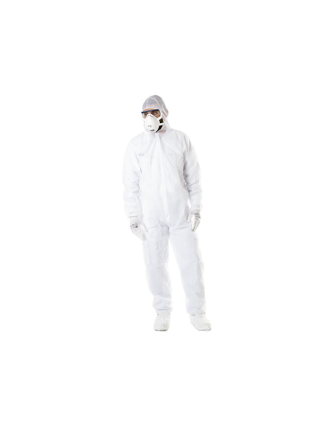 Buzo desechable JUBA 1188 BPPE. Cierre con cremallera y elástico en capucha, muñecas, tobillos y cintura. Polipropileno 40 gr/m2. Aplicaciones: donde no sea necesario una protección química del usuario. Tallas: L-XXL