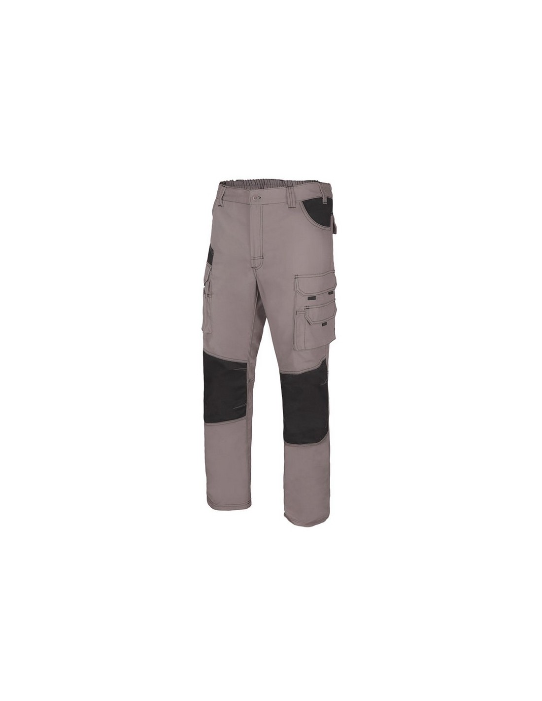 Pantalón multibolsillos bicolor RATIO RP-1 Tejido canvas. 65% poliéster 35% algodón. Cintura elástica. Refuerzo en rodillas y trasero. Doble costura seguridad. 10 bolsillos. Color gris/negro. Tallas: 38-52.